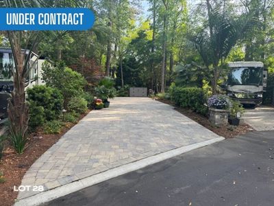 Welcome to PERMETER RV LOT #28. This beautiful paver RV Lot comes complete with a built-in grill island and can accommodate a 45' coach along with 2 cars parked side by side. The spacious outside entertaining area includes all furniture pictured, 2 umbrellas, irrigation, and great landscape lighting.